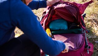 Als laatste is het van belang om de juiste maat tas te kiezen. “Sommige modellen zijn verstelbaar, zodat deze helemaal op jouw lichaam zijn aan te passen. Andere tassen komen in verschillende maten”, zegt Veerle. Voor de juiste maat van de tas, is je ruglengte doorslaggevend. Deze kun je zelf opmeten met wat hulp of door een Buitenexpert in een van onze winkels.