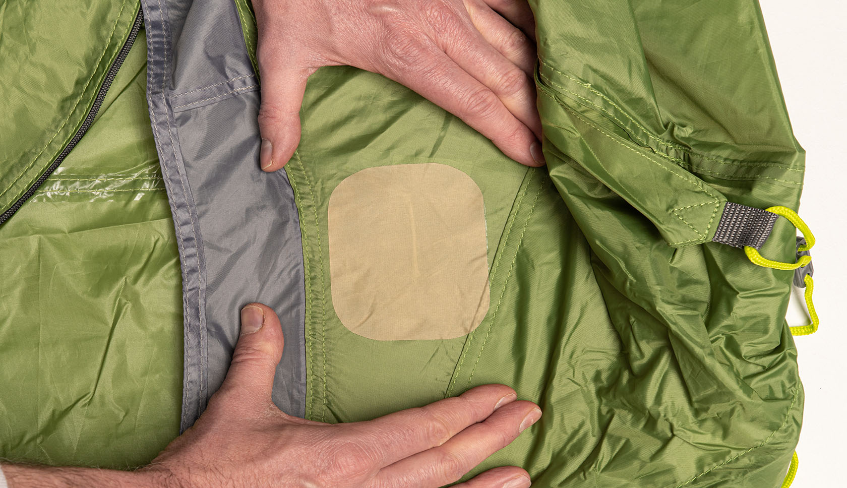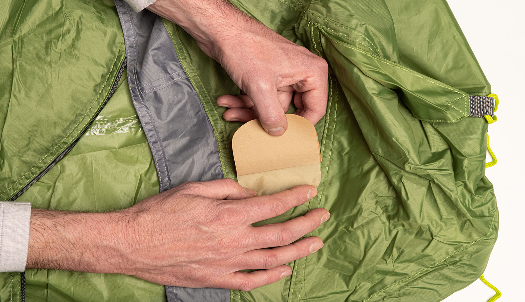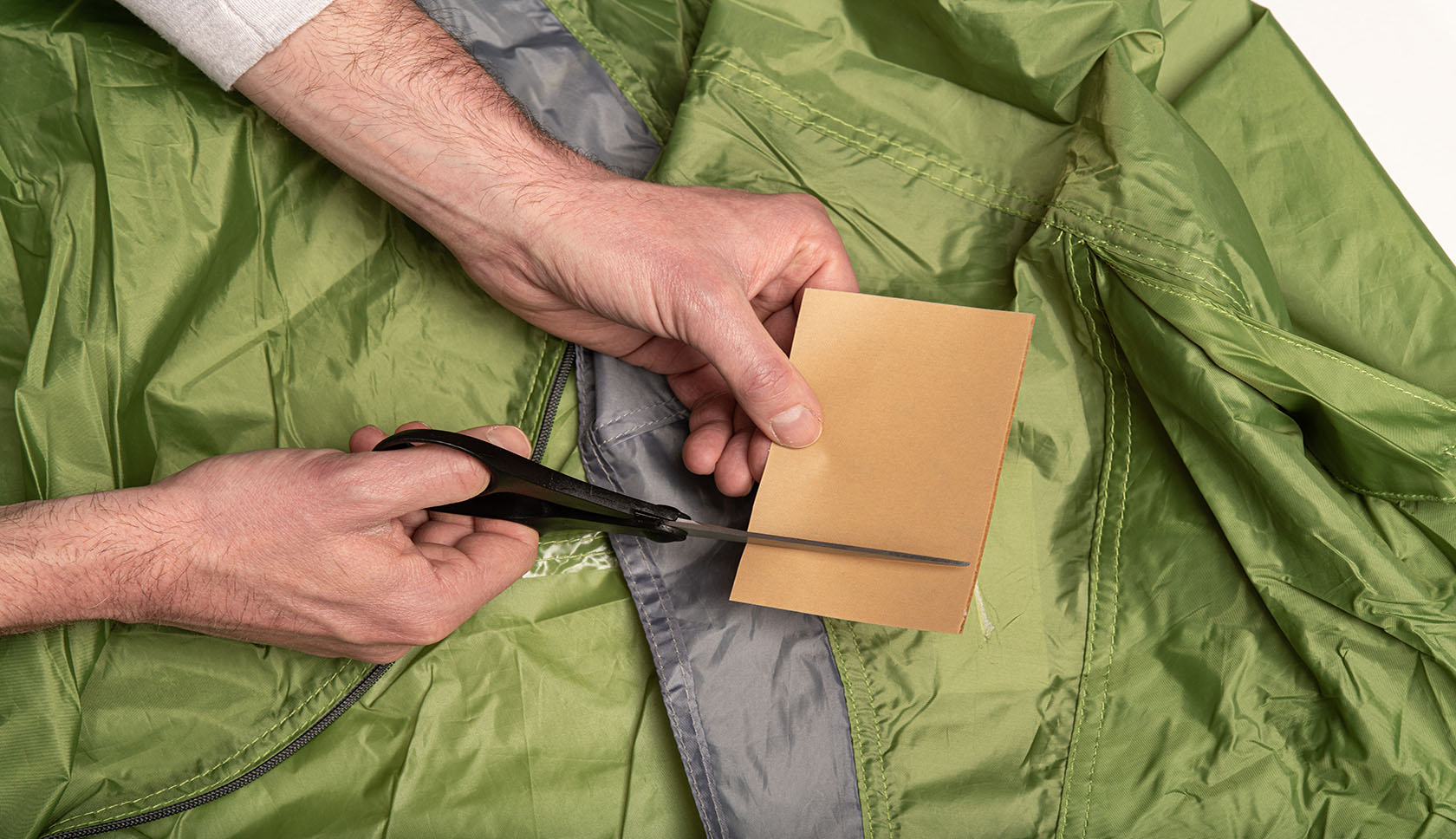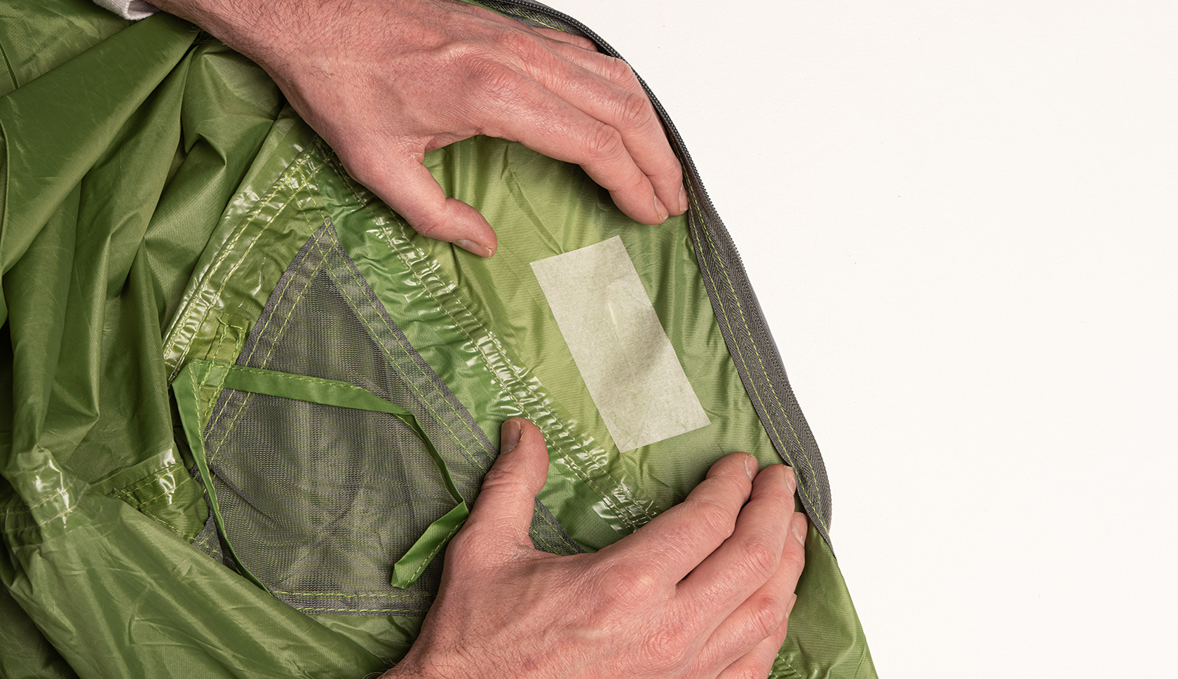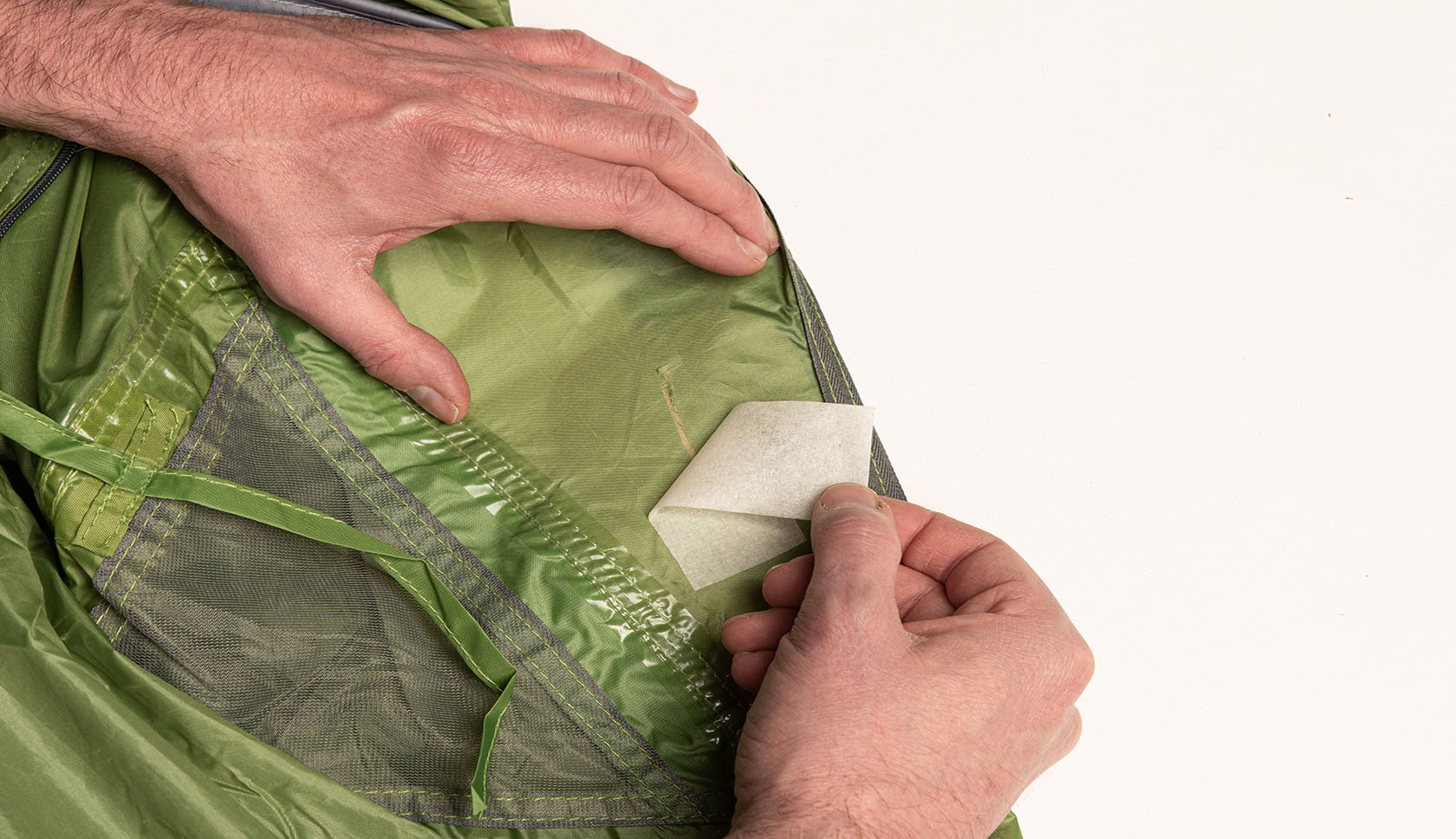 Als de schade aan je tentdoek geen flinke scheur is, maar een gaatje of heel klein scheurtje, dan is de hulptape niet nodig.