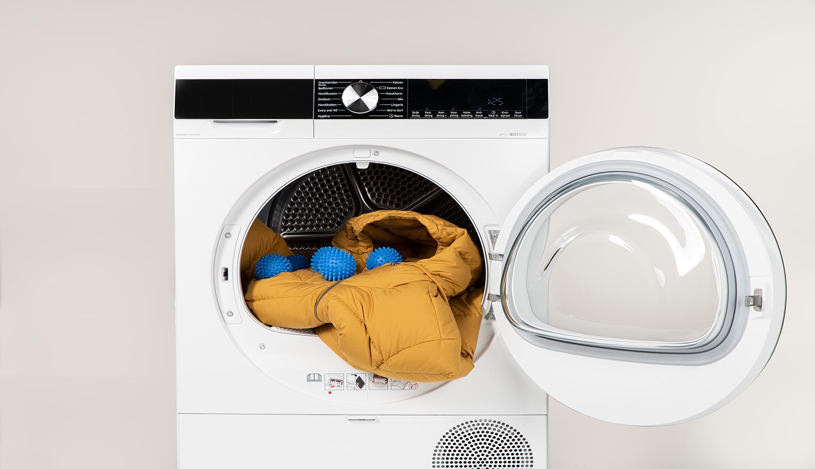 Je kunt je donzen jas handmatig drogen door deze neer te leggen (niet ophangen!) en om de zoveel tijd op te kloppen. Zo voorkom je dat de donsveertjes aan elkaar gaan plakken. Maar hé, die droger is niet voor niets uitgevonden. We geven je drie tips om je jas er als nieuw uit te laten zien.